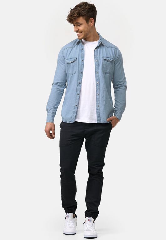 • Dieses Jeanshemd von INDICODE ist ein absolutes Must-Have. Es überzeugt mit seinen unzähligen Kombinationsmöglichkeiten und seiner tollen Baumwoll-Qualität.